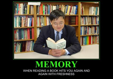 This is a picture of an anonymous studious brother, reading a textbook to see what he should order at a Chinese restaurant. What kind of caption would perfectly capture this picture?